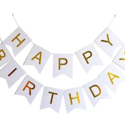 Happy Birthday Fánalengja Hvít og Gyllt Stór