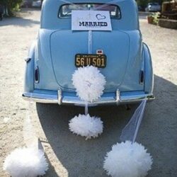 4.960 kr.Brúðarbíll Hvít Pappablóm 4stk