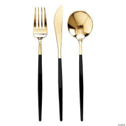 Hnífapör Plast Elegant Svört og Gyllt 3stk