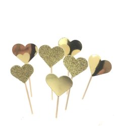 Hjörtu Gyllt Kökutoppar 7 stk