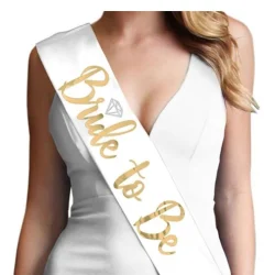 Bride To Be Borði Hvítur með Gylltum Stöfum